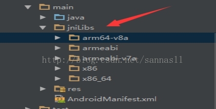 (2)使用默认配置,不需要修改build.gradle。在 main 目录下创建文件夹 jniLibs (如果有就不需要创建了),将下载文件的 armeabi 文件夹复制到这个目录下,如果已经有这个目录,将下载的 so 库复制到这个目录即可