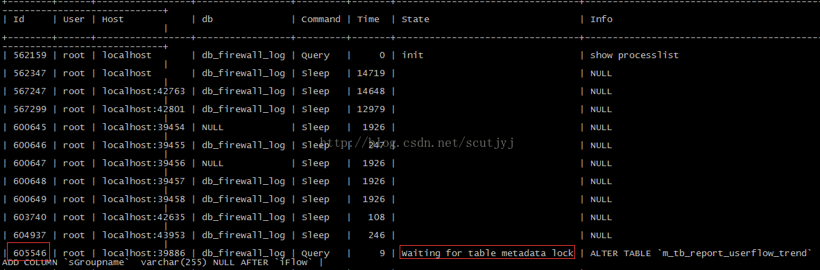 2、MySQL长事务导致的Table Metadata Lock: