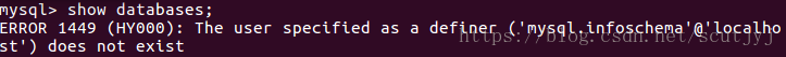 10、在Ubuntu 16.04下,当MySQL被动更新了版本时(如使用apt-get install安装Plibmysqlclient-dev库【Python的mysql-python包依赖该库】),比如从5.7版本更新为8.0版本,此时连上数据库(使用root账户)后执行指令,如show databases,会出现如下错误: