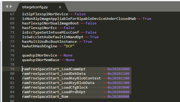 对于 i.MXRT 系列,为了支持外部启动设备的擦写以及各种加密启动功能,工具内部经常需要临时往 MCU 的内部 SRAM 里加载一些配置数据,这些配置数据会被 ROM/Flashloader 使用以完成相应的功能。在 v4.0 版本之前,加载临时数据的 SRAM 地址都是固定的,用户如果想修改(有用户反映默认的地址在一些情况下可能不适用),需要重新打包生成新 exe。而在 v4.0 版本,这些地址全部移到了 NXP-MCUBootUtilitysrctargetsMIMXRTbltargetconfig.py 里,这样就可以自由修改了。