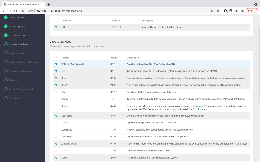 以上就是忧郁小熊猫最近收集整理的关于Ambari安装和配置详细步骤一、准备环境二、修改主机名和hosts文件三、关闭防火墙和selinux(所有主机均执行以下操作)四、免密登陆(所有主机均执行以下操作)五、同步时间六、配置安装yum源七、安装Mysql( master上)八、安装ambari(Master上执行)九、系统配置十、安装配置部署HDP集群 小编在安装的时候,随手做个记录,希望对大家有所帮助,如还有疑问可留言~的全部内容,更多相关Ambari安装和配置详细步骤一、准备环境二、修改主机名和hosts文件三、关闭防火墙和selinux(所有主机均执行以下操作)四、免密登陆(所有主机均执行以下操作)五、同步时间六、配置安装yum源七、安装Mysql(内容请搜索靠谱客的其他文章。