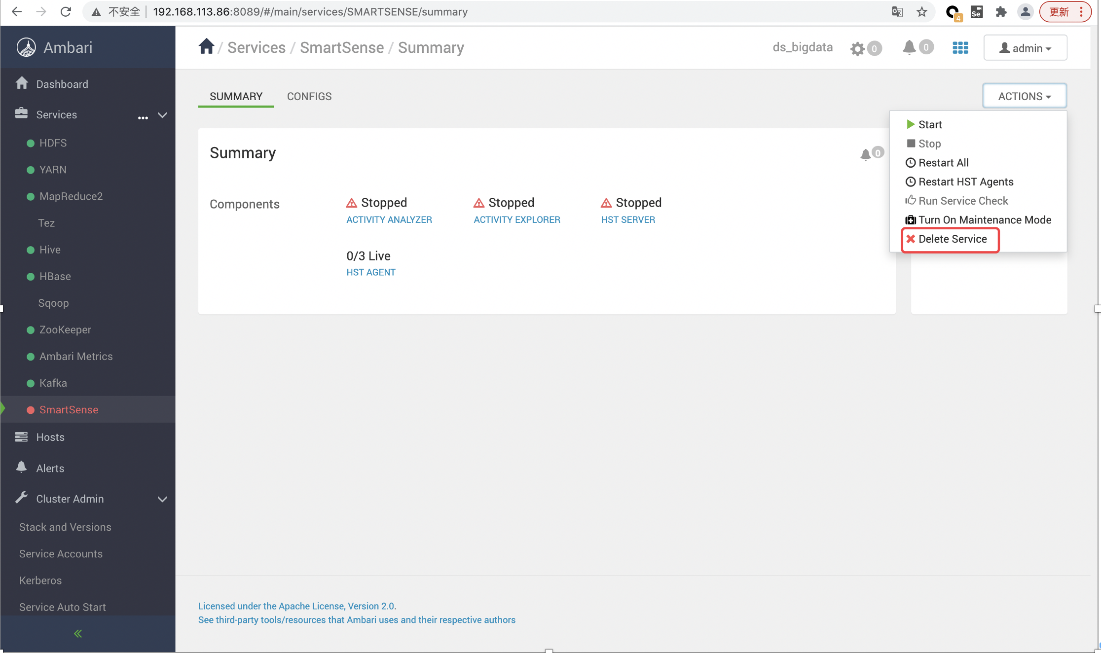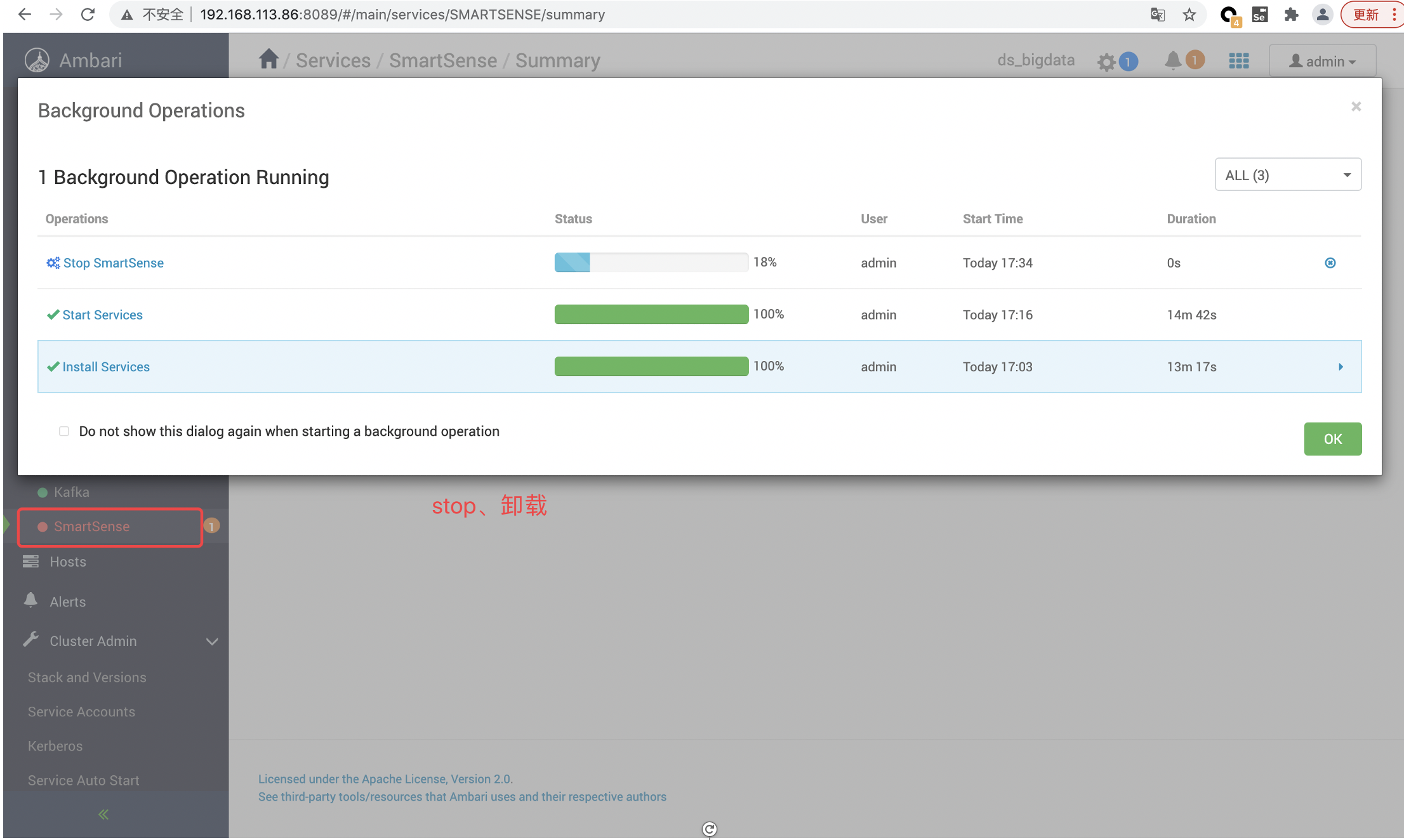 13、由于SmartSense收费的,前面安全默认勾上,所以这边给卸了,可以忽略,小编记录自己的安装过程。