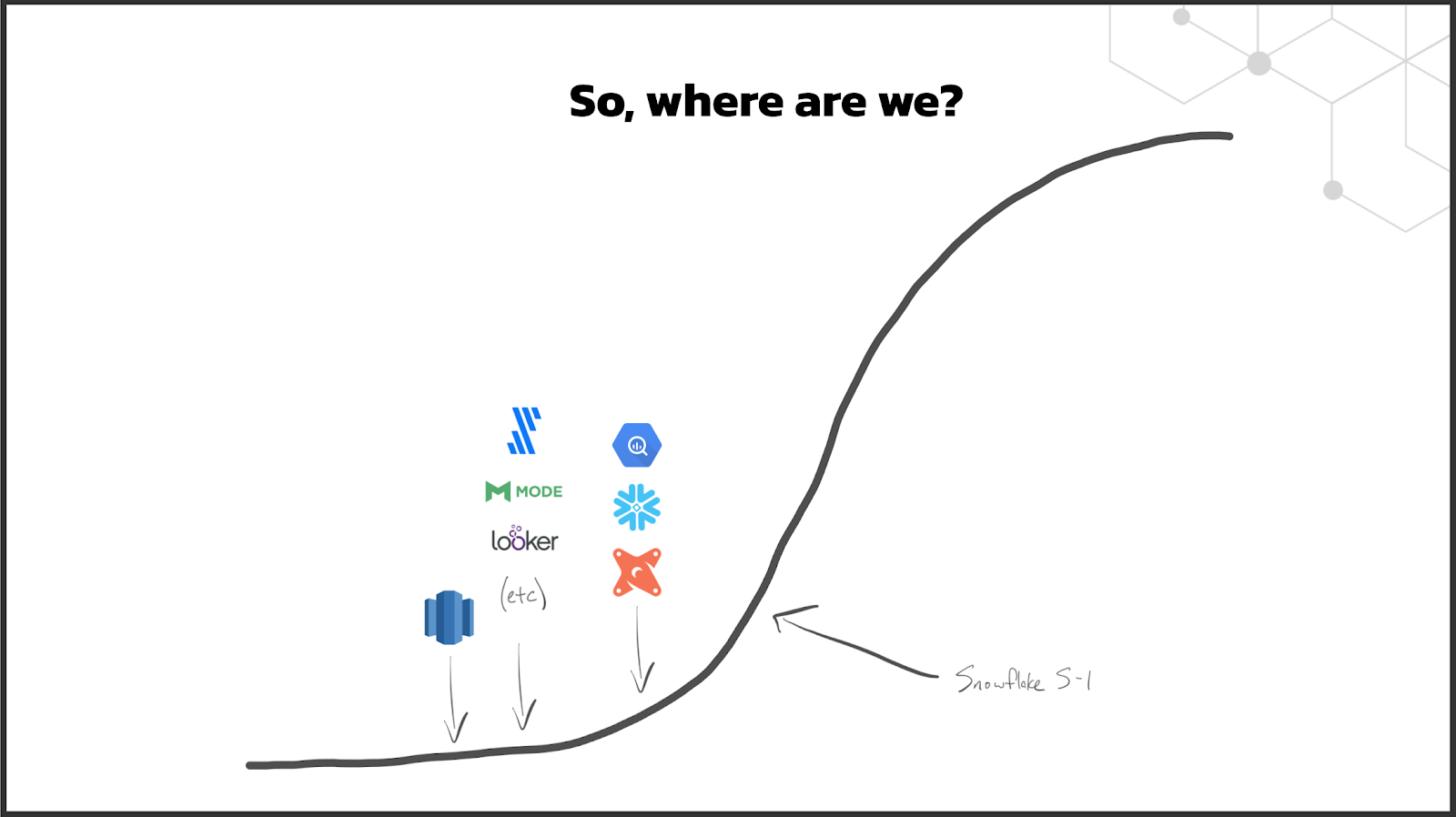 BigQuery直到2016年才发布标准SQL的支持,因此在这之前并没有被广泛采用。Snowflake的产品直到2017-2018年才真正的成熟。
