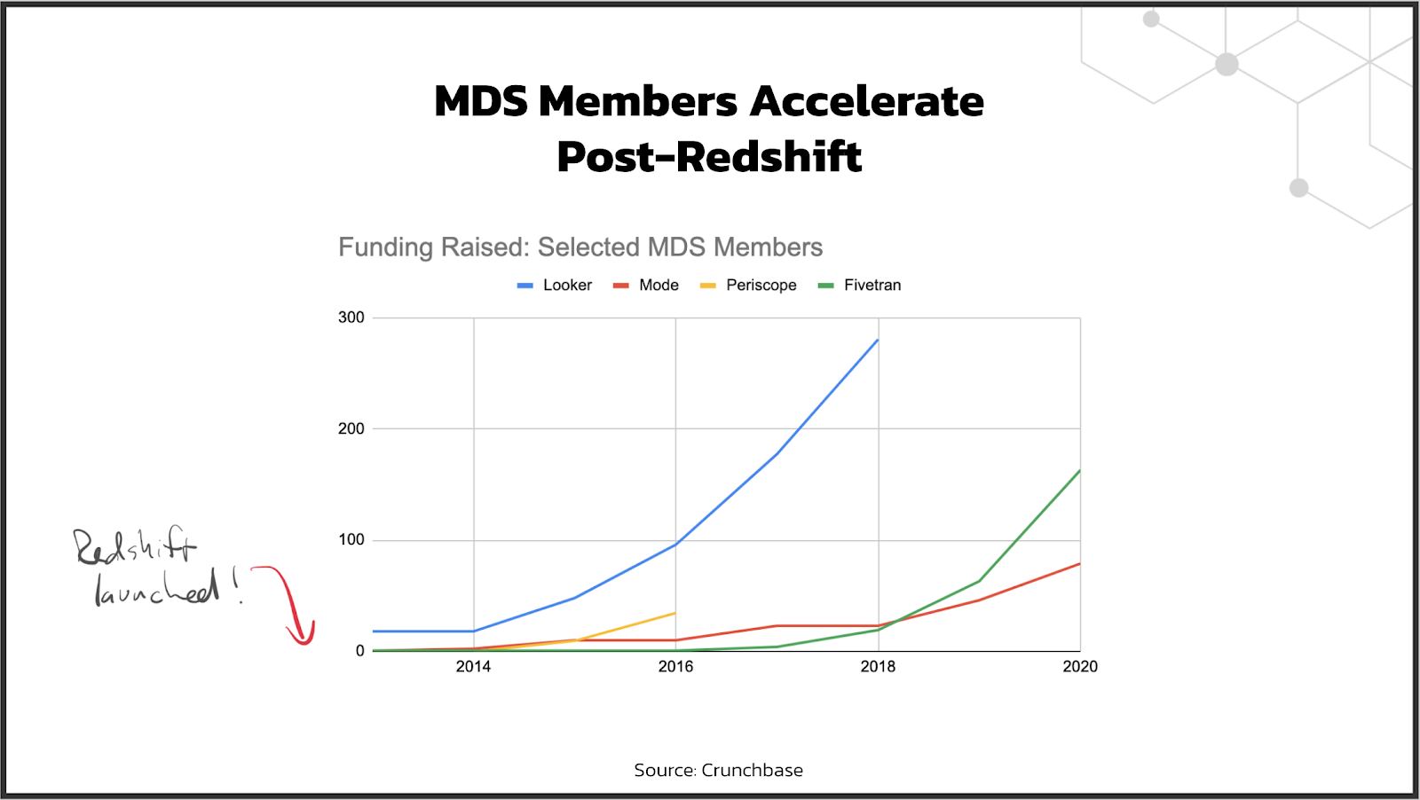Snowflake让很多人知道了云数仓,云数仓也是MDS的核心一环,没有云数仓的MDS犹如海市蜃楼。CDW 改变了企业收集与统一数据的方式,创业公司只需要接入几家主流 CDW,以 SaaS 的形式提供服务,专注在自己核心的价值主张上,然后迅速成长并吸引到资金。