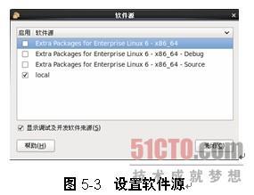 在使用PackageKit的软件源设置窗口时,可以选择使用本地还是Fedora Project 的 EPEL,如图5-3所示。