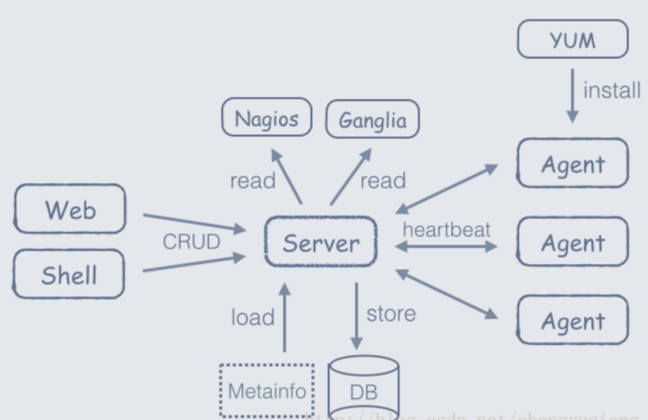 对外,Ambarii-Server提供ambari web,rest api,ambari shell三大方式操作机群;