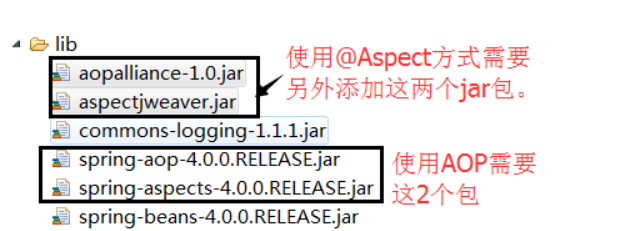 利用aspectj实现AOP功能,需要安装eclipse的aspectj插件(编译*.aj文件,jdk编译不了*.aj文件),依赖aspectj的jar包。