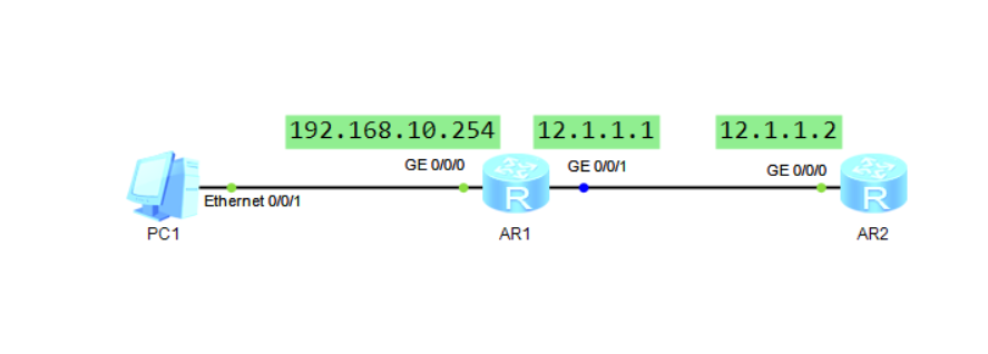 [R2]ip route-static 192.168.10.0 24 g0/0/0 12.1.1.1