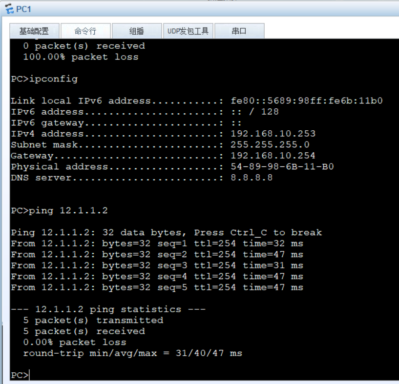 PC端DHCP获取地址,能够ping通路由器R2