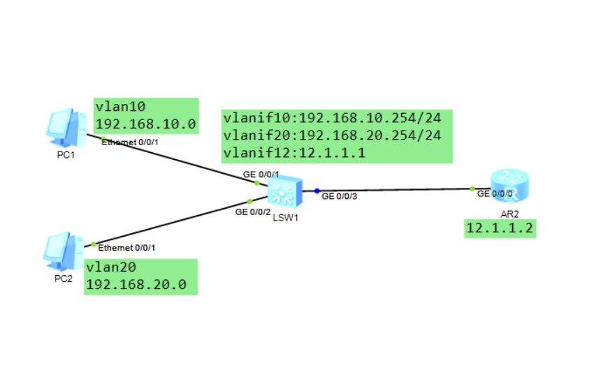 [SWw1-GigabitEthernet0/0/3]port default vlan 12