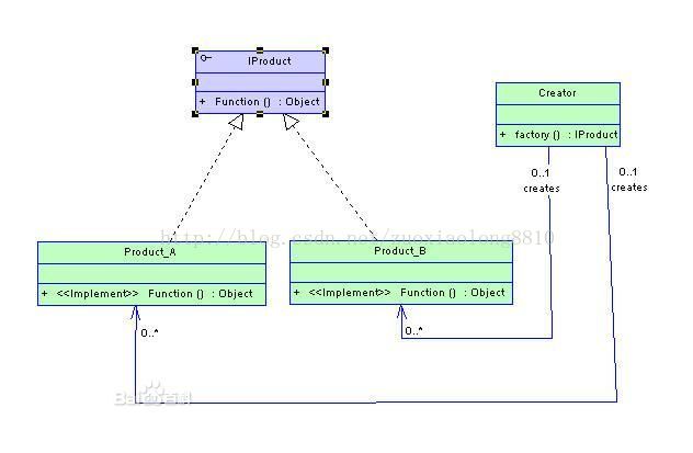 上面便是整个类图转换为JAVA代码的简单例子,将上面标准的简单工厂模式的类图和代码给出,