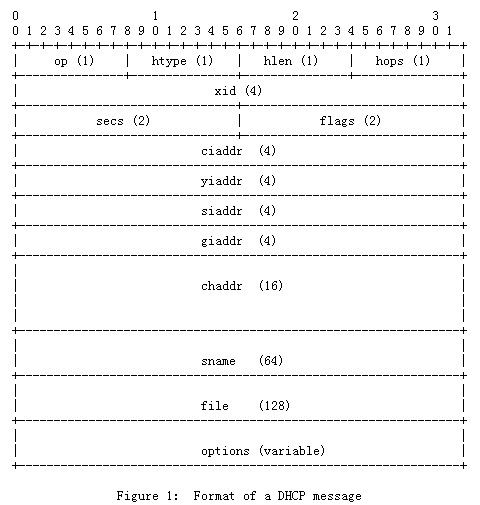 | 链路层头 | IP头 | UDP头 | DHCP报文 |