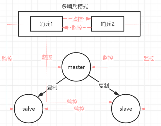 哨兵模式核心还是主从复制,只不过在相对于主从模式在主节点宕机导致不可写的情况下,多了一个竞选机制:从所有的从节点竞选出新的主节点。竞选机制的实现,是依赖于在系统中启动一个sentinel进程。