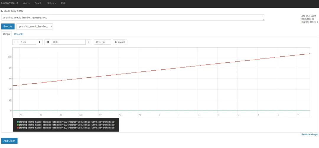 promhttp_metric_handler_requests_total{code="200",instance="192.168.0.107:9090",job="prometheus"} 106
