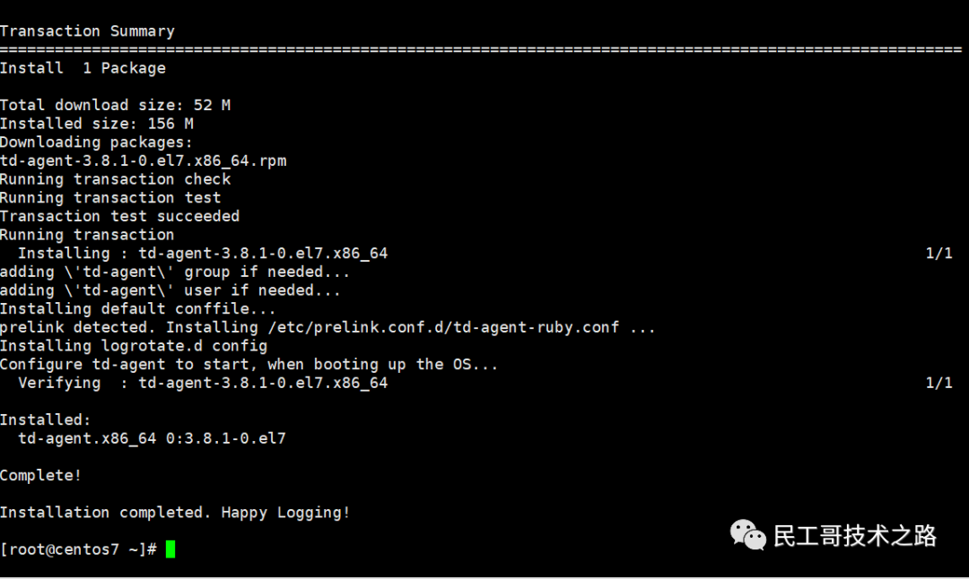 [root@centos7 ~]# tail -n 1 /var/log/td-agent/td-agent.log