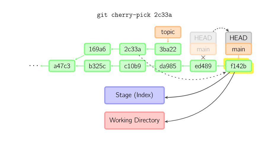 一旦此后你切换到别的分支,比如说main,那么这个提交节点(可能)再也不会被引用到,然后就会被丢弃掉了。注意这个命令之后就不会有东西引用2eecb。