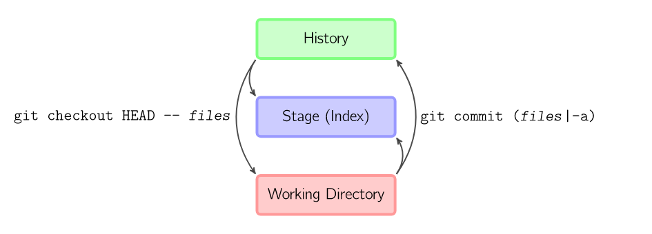 git commit files 进行一次包含最后一次提交加上工作目录中文件快照的提交。并且文件被添加到暂存区域。