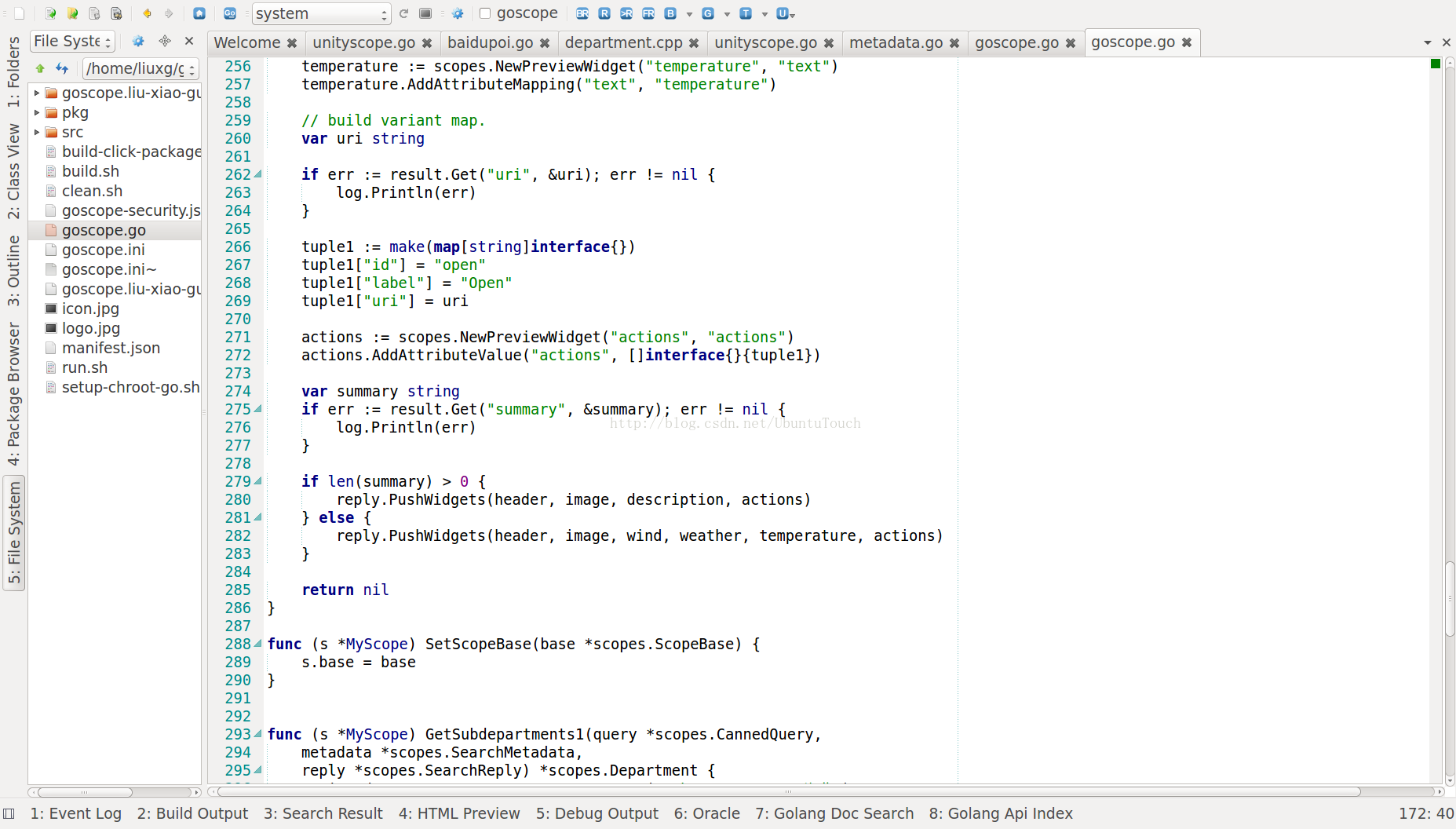 由于一些原因,目前我们的Ubuntu SDK并没有支持go语言的Scope的开发。可喜的是,我们可以使用Command Line来完成我们的开发。俗话说,好镰不误砍柴功。一个好的工具无疑能帮我们更快更好地开发。我目前使用的编辑器是LiteIDE。这个是转为go语言而设计的IDE,非常简洁而使用,建议大家试用。