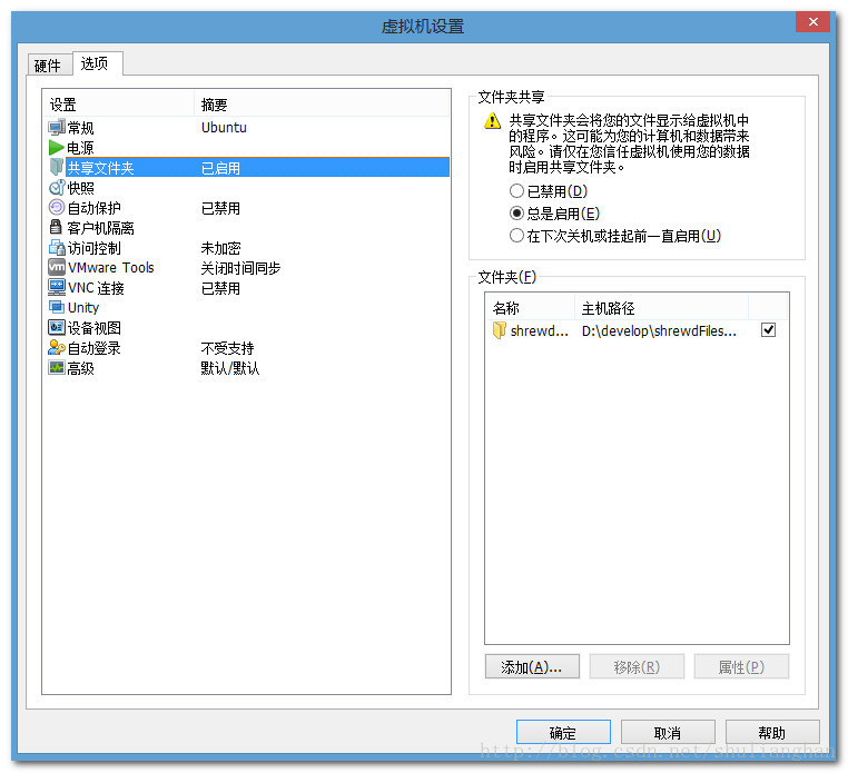 选择 设置 选项, 设置共享目录 : 注意, 该操作一定要在关闭 操作系统后执行;