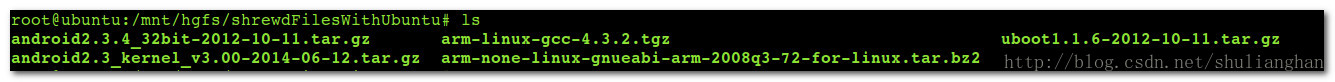 拷贝源码和编译器到 Ubuntu 上 : 将 Android 内核 框架 u-boot 源码, 编译器, 交叉编译器 拷贝到共享文件中, 此时我们就可以在 Ubuntu 中看到这些文件了;