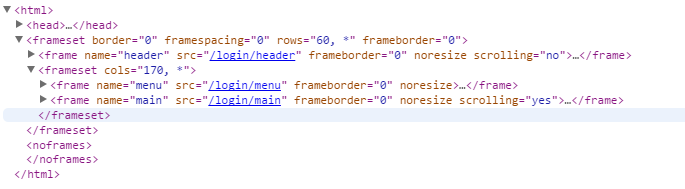 网页上有3个frame:header、menu、main,分别代码顶部、左侧、右侧(其中menu、main在另外一个frameset中)