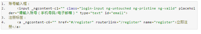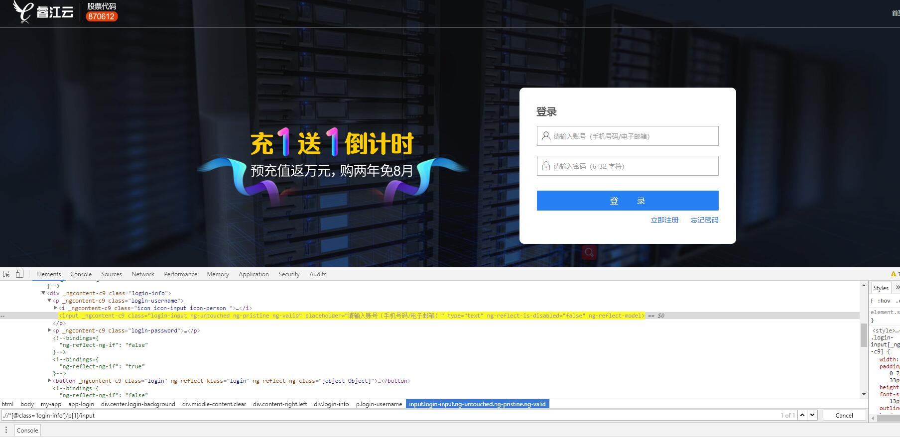 举例睿江云登录页面,账号框及注册调整下的元素信息