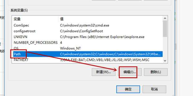 选择“path”,单击“编辑”