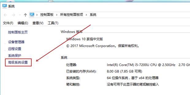 选择“高级系统设置”