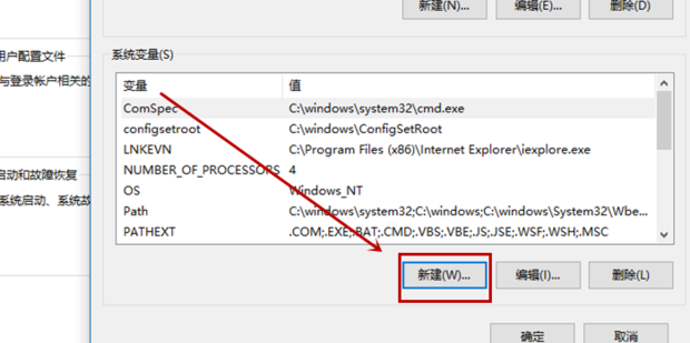 在“系统变量”中选择“新建”