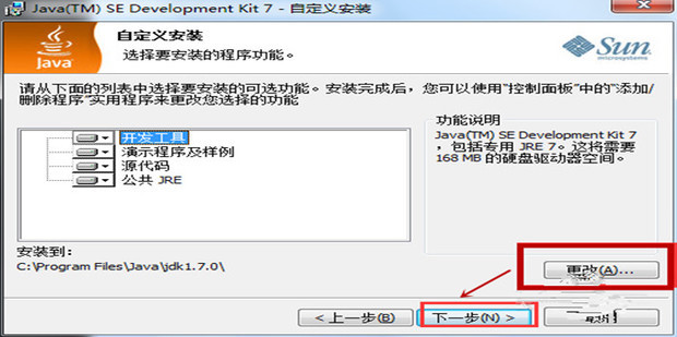 点击“更改”,选择安装目录,然后选择“下一步”