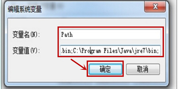 在变量值一栏输入C:/Program Files/Java/jdk1.7.0_60/bin;C:/Program Files/Java/jre7/bin; 然后单击“确定”