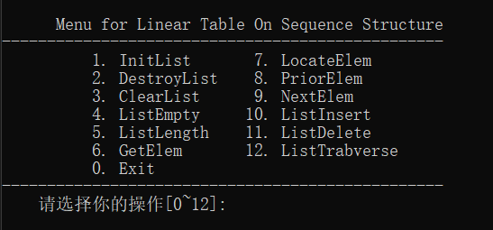 依据最小完备性和常用性相结合的原则,以函数形式定义了线性表的初始化表、销毁表、清空表、判定空表、求表长和获得元素等 12 种基本运算,具体运算功能定义如下。