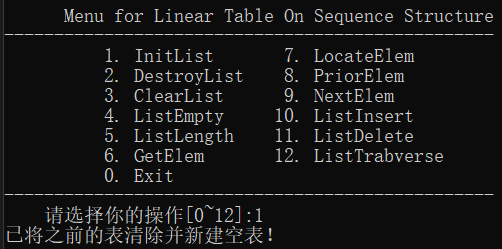 - 线性表已存在,则清除之前的表并新建空表;(如图 1-3 所示)