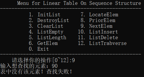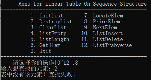 - 输入表内没有的元素值,返回失败;(如图 1-18 所示)