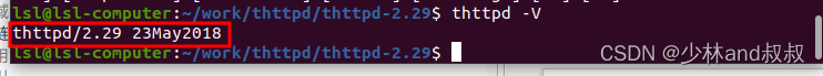 7.安装完成后,在命令行输入如下命令查看thttpd安装是否成功及版本号。