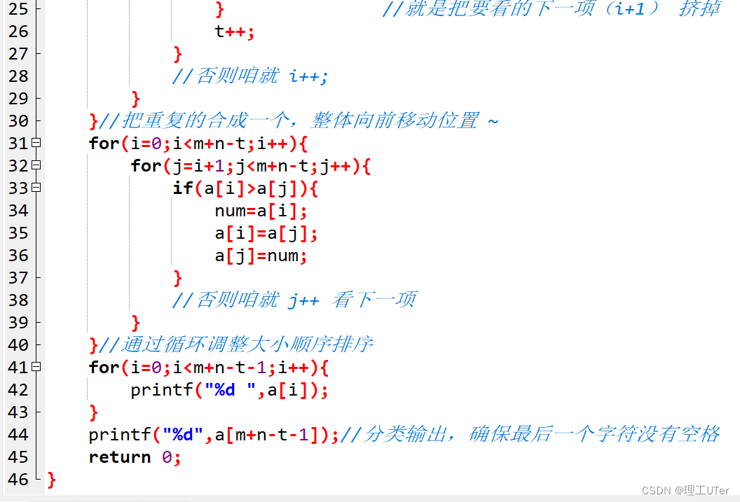 for(i=0;i<m+n-1-t;i++){//减一保证j能存在 t=0一开始