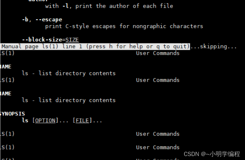 man 命令是查看其他命令的帮助手册:manual page ,通过 man ls 来查看: