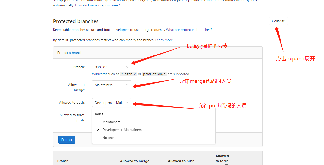 以上就是忧虑小海豚最近收集整理的关于gitlab设置指定人员合并代码merge权限的全部内容,更多相关gitlab设置指定人员合并代码merge权限内容请搜索靠谱客的其他文章。
