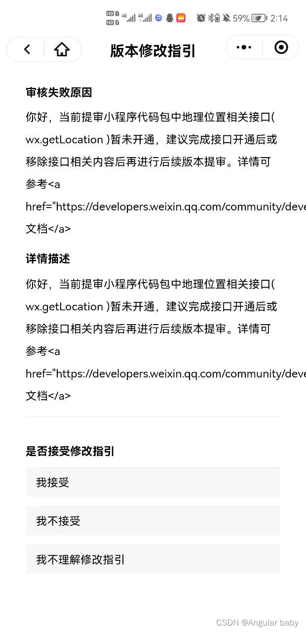 以上就是紧张期待最近收集整理的关于小程序发布提审被驳回,提示当前提审小程序代码包中地理位置相关接口wx.getLocation暂未开通的全部内容,更多相关小程序发布提审被驳回,提示当前提审小程序代码包中地理位置相关接口wx内容请搜索靠谱客的其他文章。