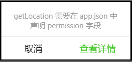 以上就是平淡白昼最近收集整理的关于getLocation需要在app.json中声明permission字段的全部内容,更多相关getLocation需要在app内容请搜索靠谱客的其他文章。