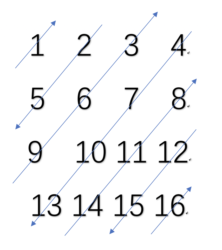 以上就是想人陪镜子最近收集整理的关于矩阵的“之"字遍历ZigZag打印的全部内容,更多相关矩阵内容请搜索靠谱客的其他文章。