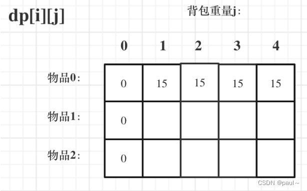 // 只放物品0时 背包容量小于物品重量时 dp[0][j]为0