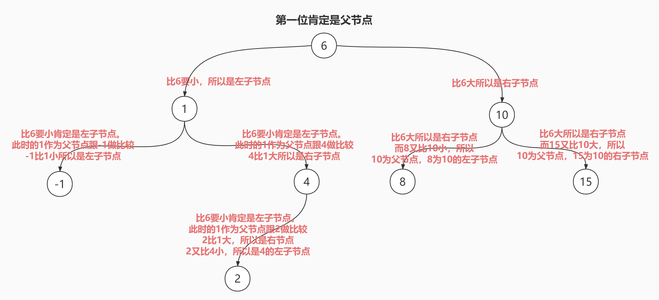 // 判断条件就是新来的节点的值是否小于当前父节点