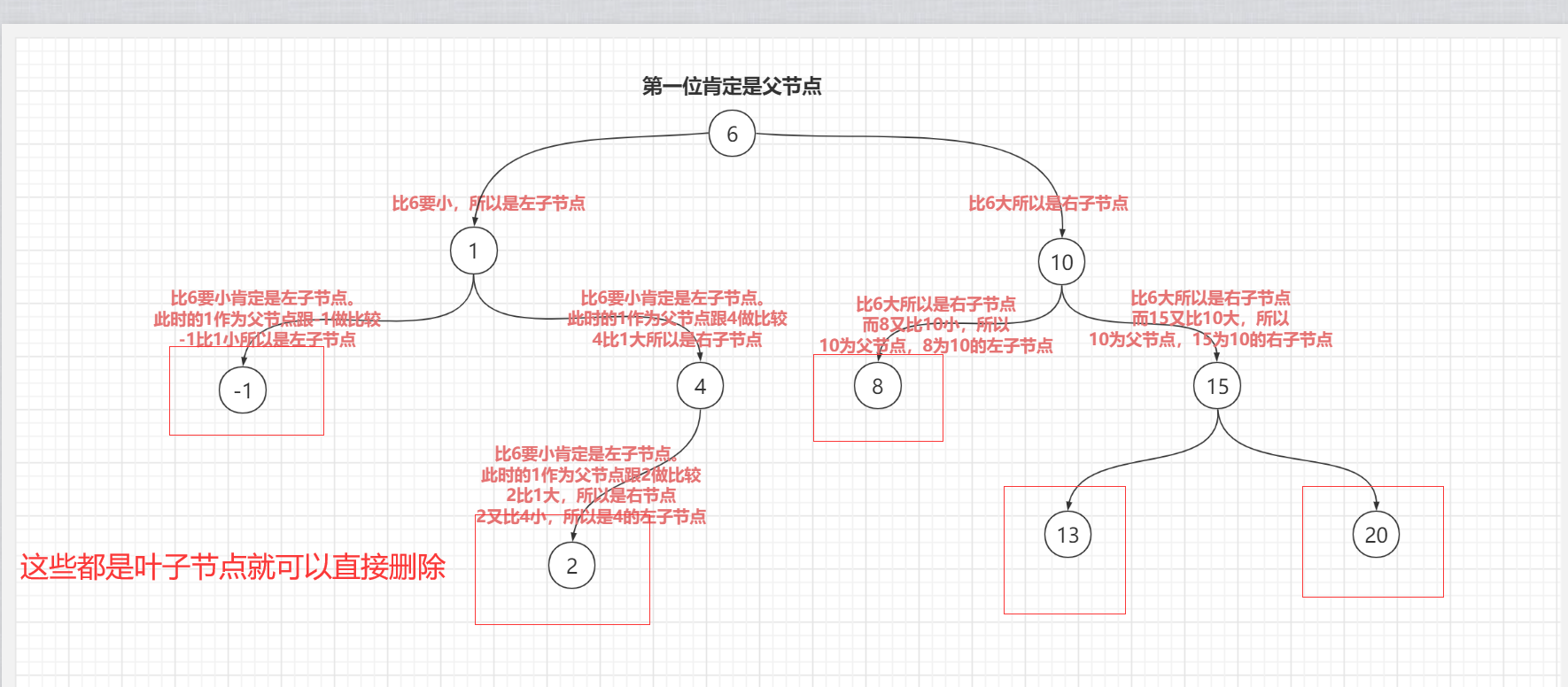 这里我们需要根据value值找到删除的叶子节点和叶子节点的父节点。