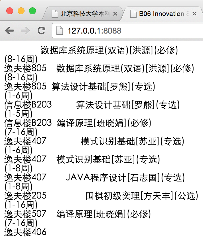 现在,我们已经登录了本科教学网,然后结合之前的pyQuery解析html就可以获取网页内的课表了。