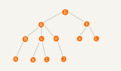 A节点就是B节点、C节点、D节点的父节点。B、C、D节点是A节点的子节点。B、C、D的父节点为同一节点,所以它们之间又互相称之为兄弟节点。没有父节点的节点被称之为根节点,如图,节点E。我们把没有子节点的节点称之为叶子节点,或者叶节点,如图种的G、H、I、J、K、L节点。