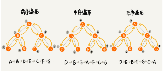 遍历二叉树的三种经典方式:前序遍历、中序遍历、后序遍历