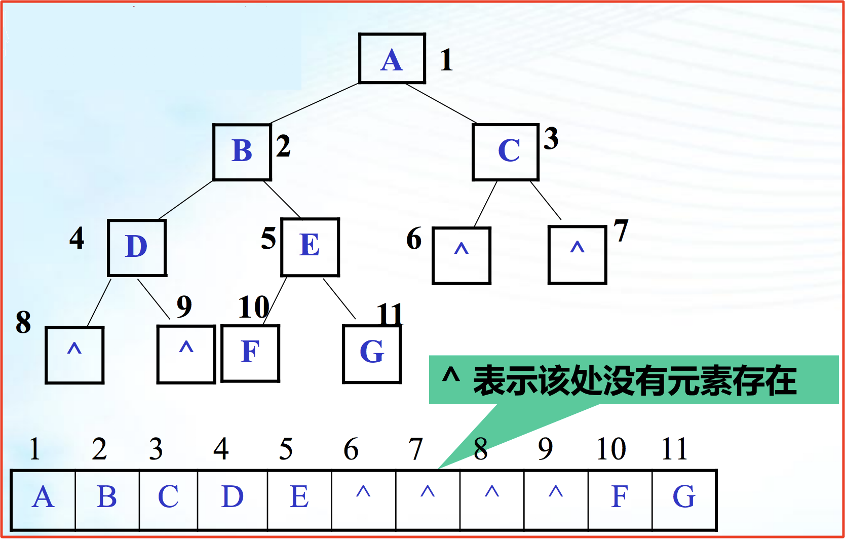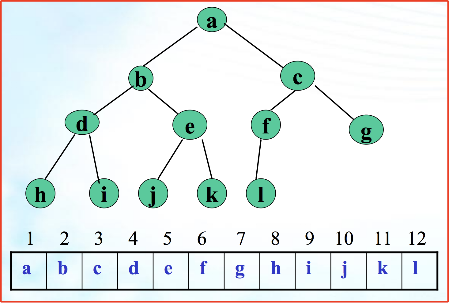对于完全二叉树来说,采用以编号作为数组的下标的方法将结点存入一位数组中,也就是将编号为i的结点存入一维数组的以i为下标的数组元素中,这种情况下,不仅节省内存,结点的位置确定也很方便。