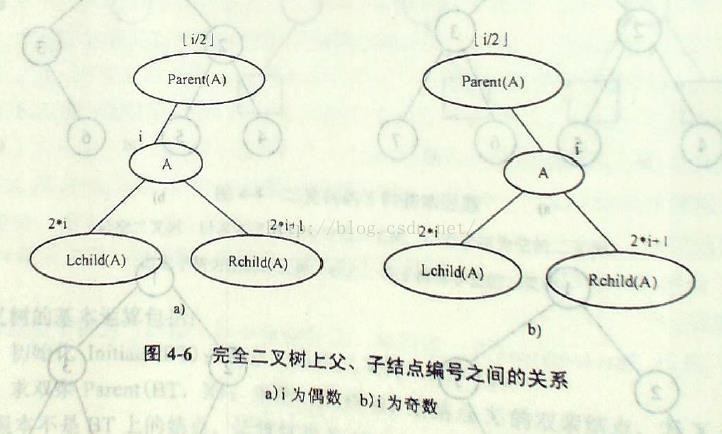 ③若2*i+1>n,则结点A无右孩子,否则,A的右孩子Rchild(A)的编号为2*i+1