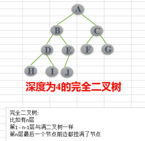 若设二叉树的高度为h,除第 h 层外,其它各层 (1~h-1) 的结点数都达到最大个数,第h层有叶子结点,并且叶子结点都是从左到右依次排布,这就是完全二叉树。